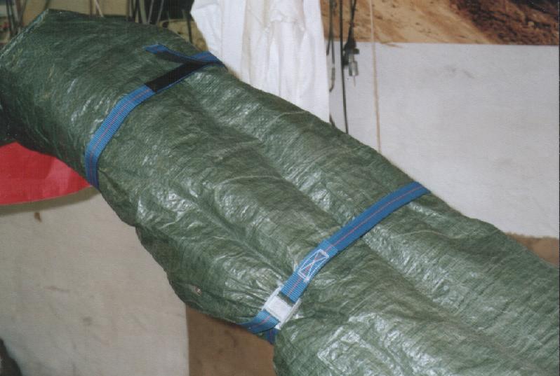 Gurt straffen, einmal nach hinten herumwickeln und dann mit dem angebrachten Klettband nochmals befestigen