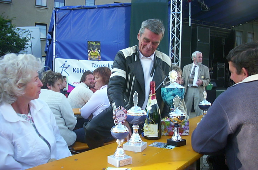 Pokale fuer weiteste Anreise (Rostock), Sieg in der Motorrad-Klasse und geringste Fehlerpunkte